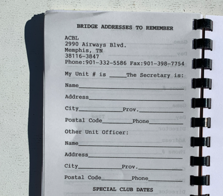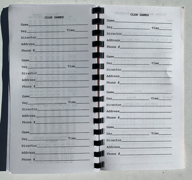 Duplicate Bridge Diary A.K.A. Log book