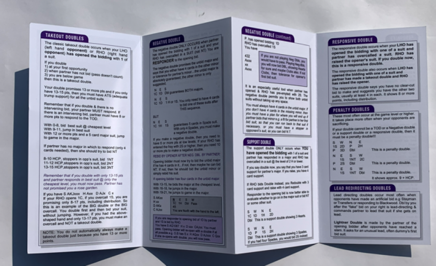 A summary of all you need to know about bidding. A laminated guide for your lap: An easy reference.