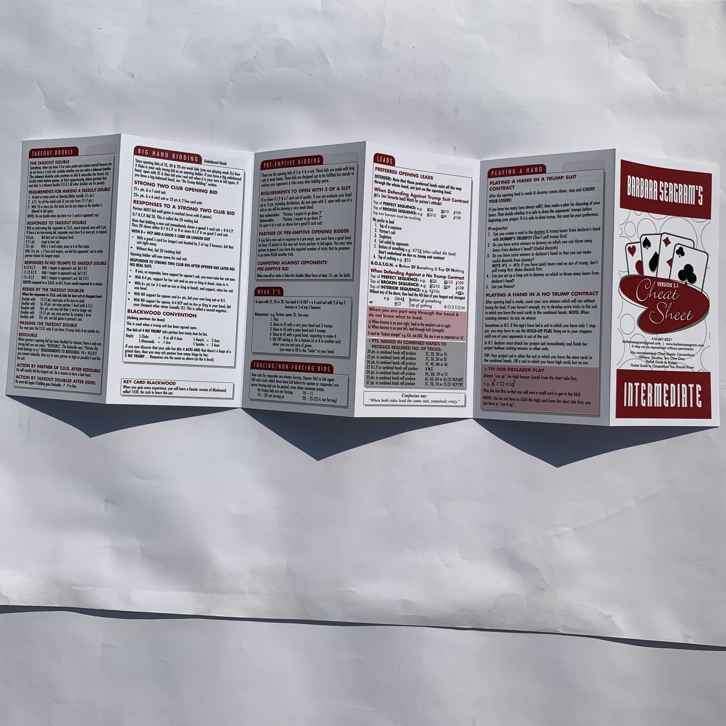 Barbara Seagram's Revised Cheat Sheet Pamphlet Intermediate Level-Free Shipping 2-5 Copies.
