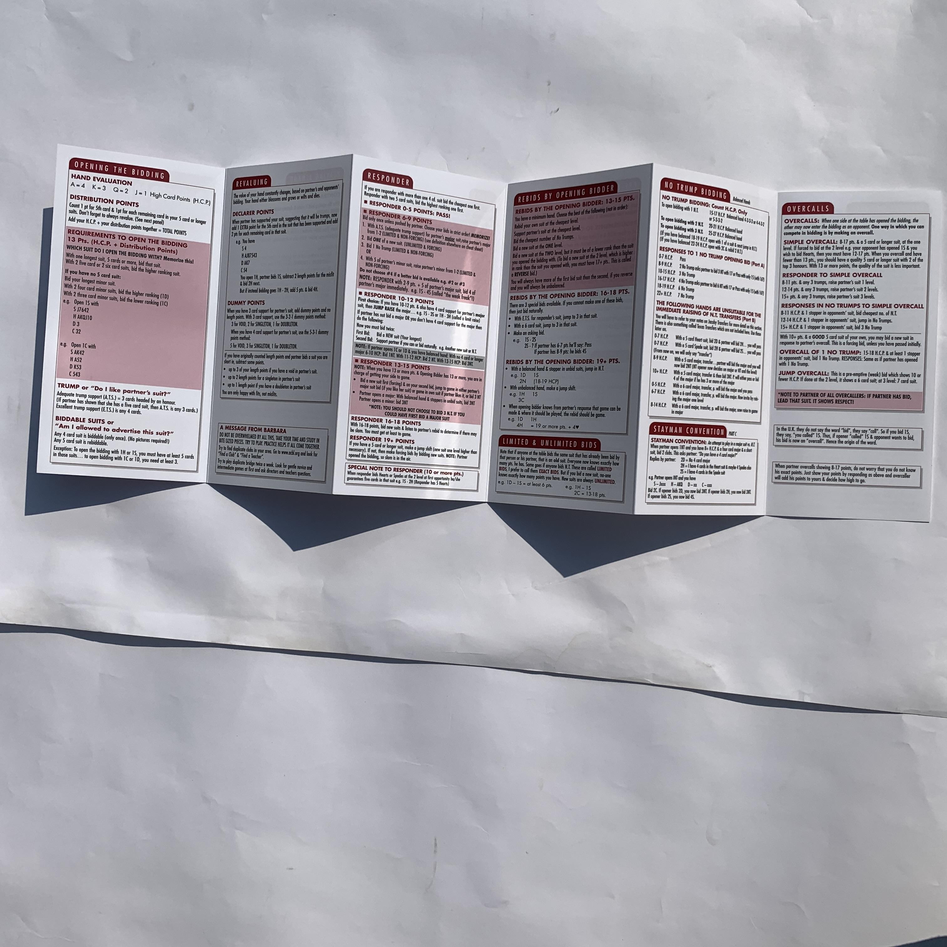 A summary of all you need to know about bidding. A laminated guide for your lap: An easy reference.